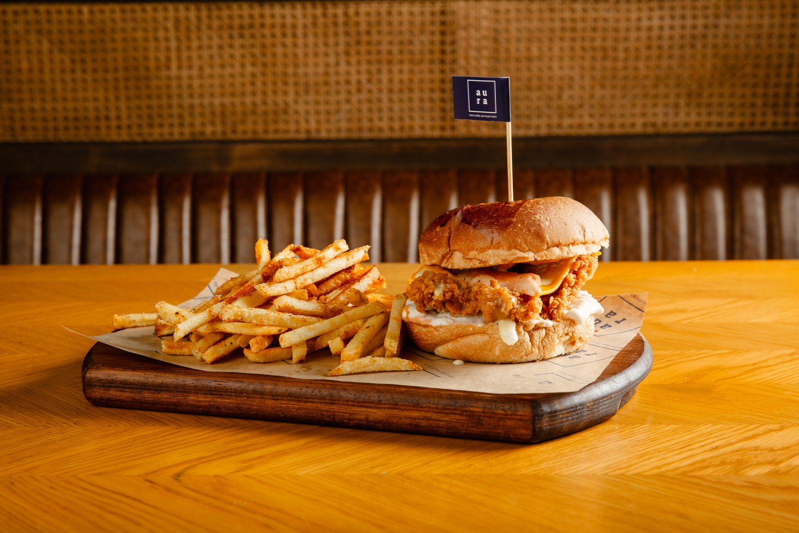 105 Gr Çift Kat Şinitzel Burger,2 Adet Soğan Halkası,Karemalize Mantar,Marul,Pişmiş Domates,Cheddar Peyniri,Hardal Sos,Ketçap Ve Patates İle